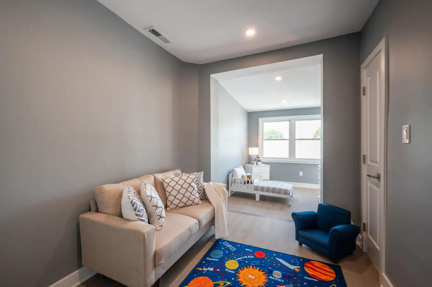 The team was hands on, providing their signature White Glove Service so the sellers didn’t have to leave Virginia to meet any vendors in Washington, DC – such a relief for these working-from-home parents. The team worked with Frank and the sellers to source the best deals of fixtures and finishes. Trevor worked with MidSouth Building Supply to help design the new kitchen with large island. The team sourced vanities online, carefully timing deliveries to reduce vendor’s waiting time. During the pandemic, appliances were a major part of the supply chain delays, but careful shopping found quality appliances in stock locally for delivery. They found reasonably priced quality tile and bathroom fixtures, both online and locally sourced.