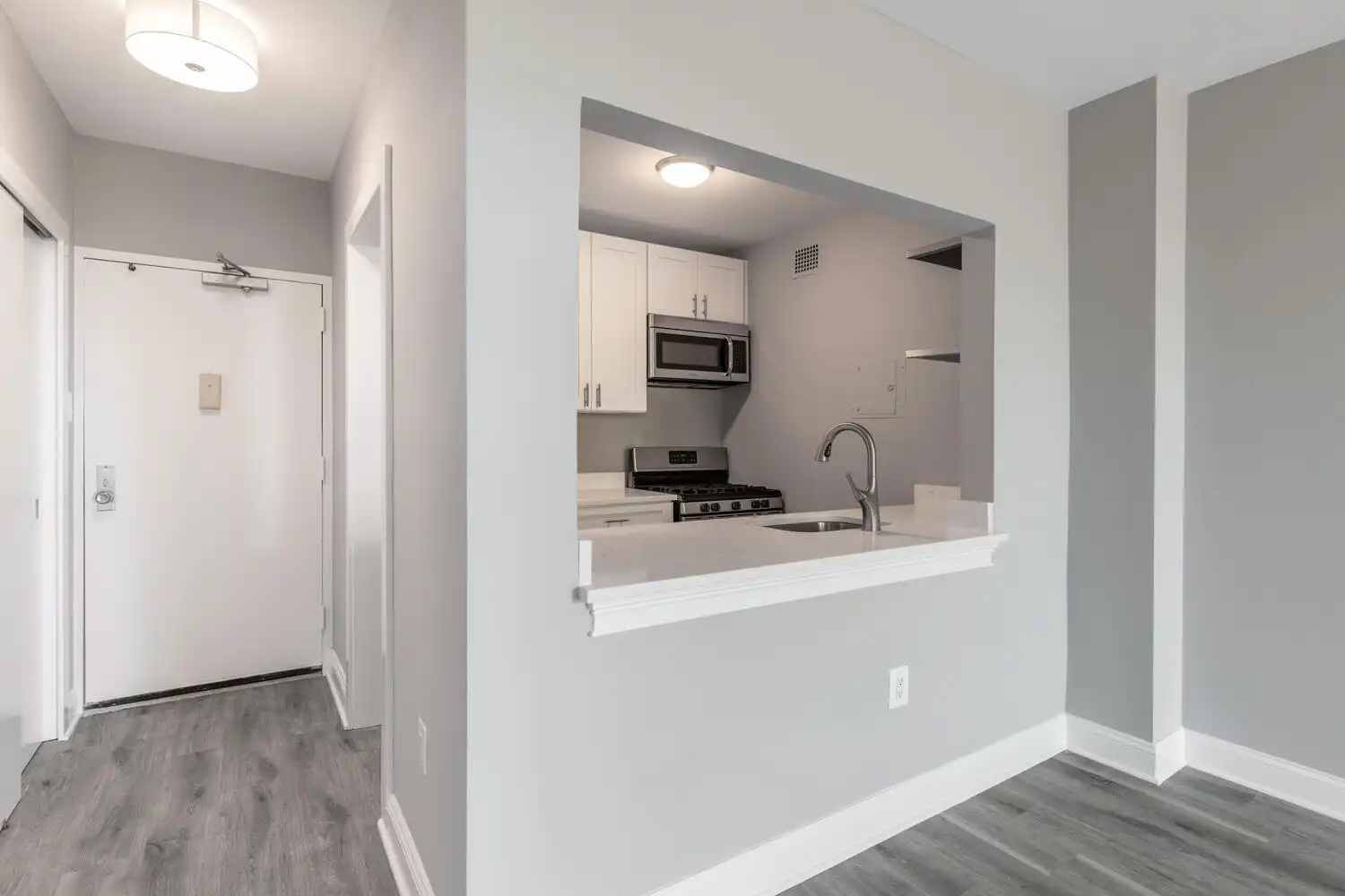 Located in the Woodlake Towers Condominium between Arlington proper and the City of Falls Church, this was a condominium rental property with a tenant who had been there for almost ten years. The challenge for this property was the wear and tear that comes with long-term tenants. It required a new bathroom and kitchen renovation, new flooring, new interior doors, and previous alterations returned to the original state. The client had a budget of $30K, which could make this transformation difficult.