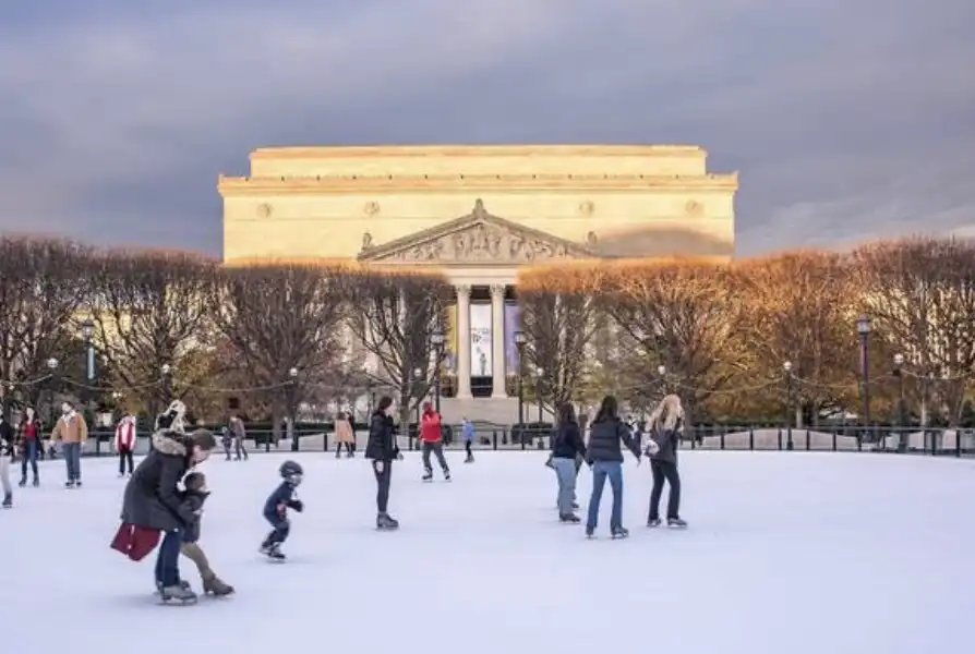 The National Gallery of Art Sculpture Garden Ice Rink – Located on the National Mall, this outdoor rink is surrounded by stunning sculptures and features a scenic winter atmosphere. You can enjoy skating with views of the National Gallery of Art and the U.S. Capitol in the distance.
