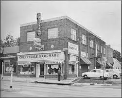 Businesses in Cherrydale were primarily concentrated along Lee Highway and Old Dominion Drive. Notable commercial buildings with historical significance include the Cherrydale Hardware Store (1936), the Cherrydale Cement Block Company (1935), and the Family Tea House (1946). The Cherrydale Historic District encompasses a total of 887 properties within its boundaries. This includes 829 single-family residences, 27 multi-unit dwellings, four churches, a school, 22 commercial buildings, two service stations, a fire station, and a meeting hall.