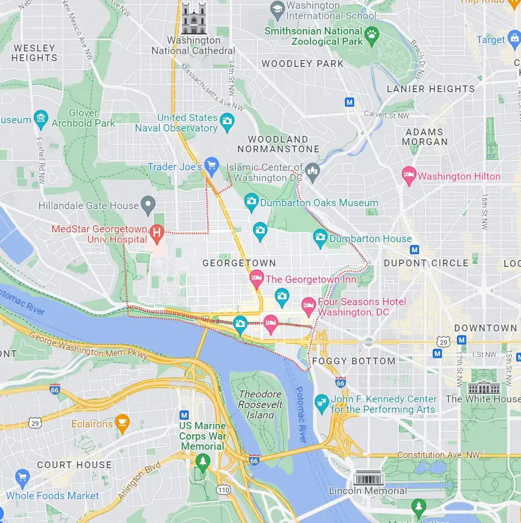 Now, of course, Georgetown is more than just its location on the Potomac River. It is the king of the NW quadrant, from a shopping and business district to a robust historic and non-historic residential area. Boutique and Restaurants line M St, with DC’s elite rubbing shoulders with Georgetown University students wandering the streets in excited gaggles.