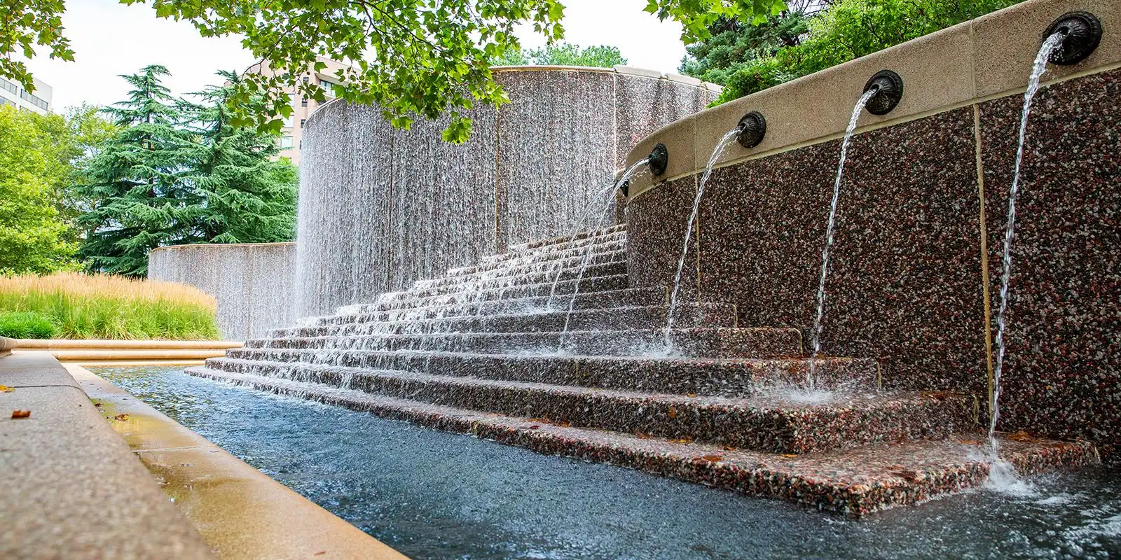 Peaceful sounds of rushing water and beautiful sculptures make Crystal City Water Park a perfect place to bring your lunch and laptop or find a moment of zen. After dark, mood lighting sets the scene for an evening outing. Each Friday throughout the spring and summer, the National Landing BID presents Fridays at the Fountain, with music, beverages and fun.
