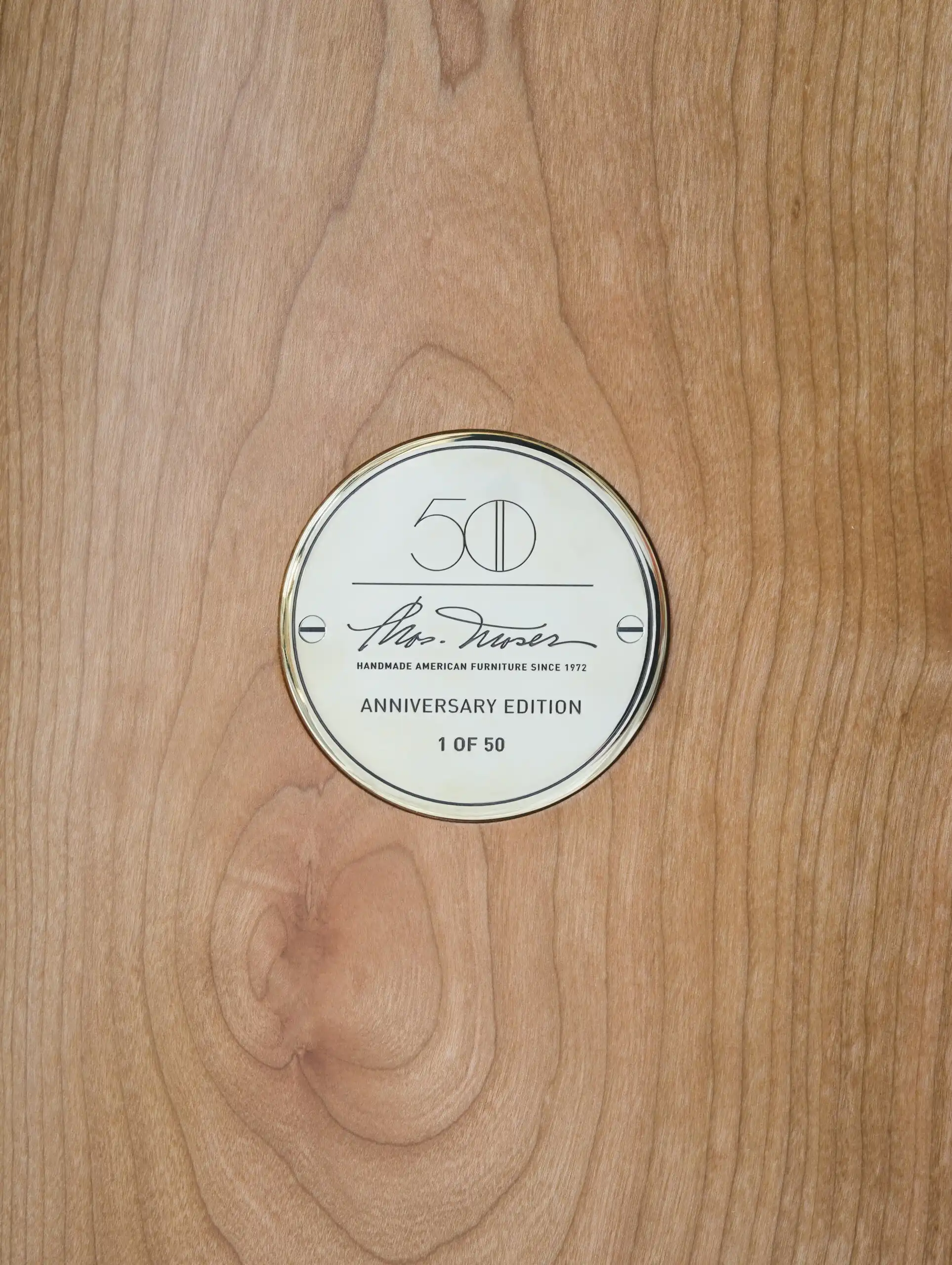 The 1972 Chair is being sold in a limited edition run with a commemorative medallion in honor of the 50th anniversary. In addition to the maker’s signature, the first 50 chairs will have an engraved brass medallion inlayed on the bottom of the seat, numbered in the order sold. Once the collector’s edition sells out, Thos. Moser will continue to produce the chair without the numbering and medallion.