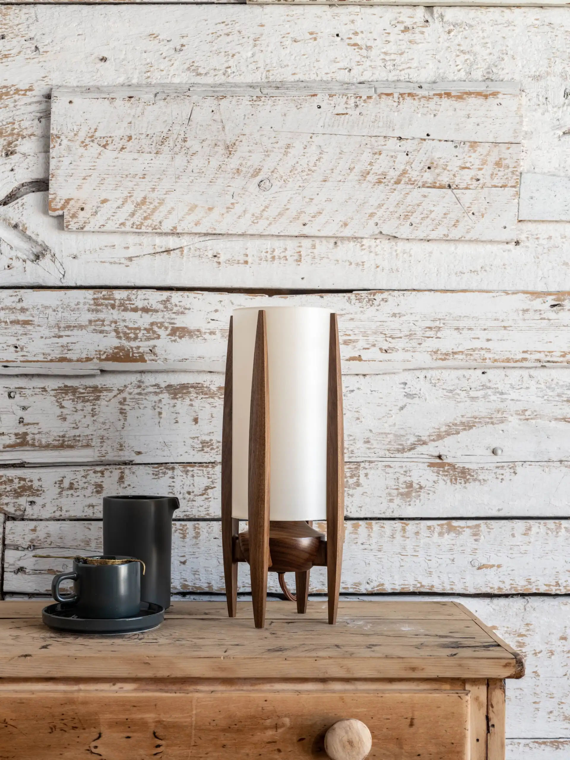 Also new this year is the Anson Lamp, which draws inspiration from Danish modern design and antique oil lamps. Four solid wood legs are joined together with mortise and tenon, while the turned center bowl houses the socket and bulb. The shade is made from renewable polylactic material that softly diffuses light.